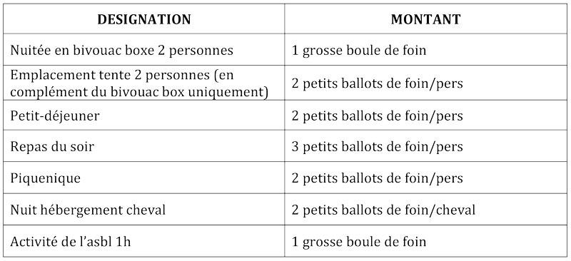 Equivalence de prix 2022-23 : Grosse boule de foin : 40€ et Petit ballot : 5€